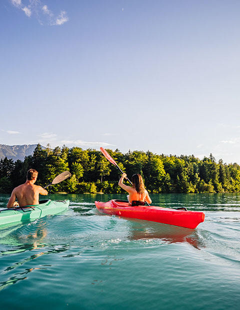 Buchen Sie im Kajakcenter Faaker See Kurse und geführte Touren für Anfänger und Fortgeschrittene oder erkunden Sie das Gewässer auf eigene Faust.